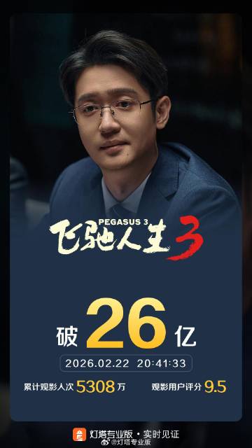 据灯塔专业版实时数据,截至2月22日20时41分,影片《飞驰人生3》票房突破26亿。