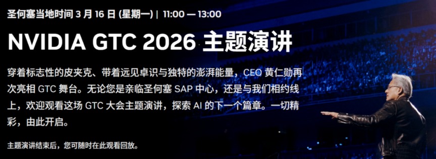此外,英伟达将于3月16日至19日在美国圣何塞举行2026年GTC大会,届时或将发布代号Feynman的GPU架构、Rubin GPU等新一代AI芯片,并计划首次展示搭载三星HBM4的Vera Rubin产品。不仅如此,大会还通过涵盖各行各业的会议,展现形塑各行业的突破性技术。