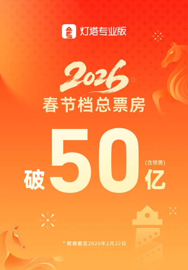 截至2月22日17时59分52秒,据灯塔专业版数据,2026年春节档(2月15日-2月23日)总票房(含预售)正式突破50亿元大关,档期内观影人次已超1.3亿,中国电影市场以强劲复苏态势领跑全球。