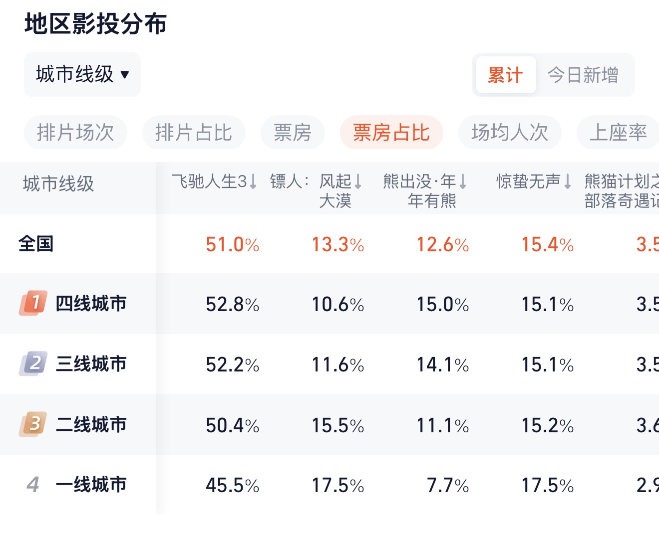 档期票房格局呈现出前所未有的集中度,《飞驰人生3》《惊蛰无声》《镖人:风起大漠》《熊出没·年年有熊》四部头部影片合力拿下超90%的市场份额,形成难以撼动的第一梯队。