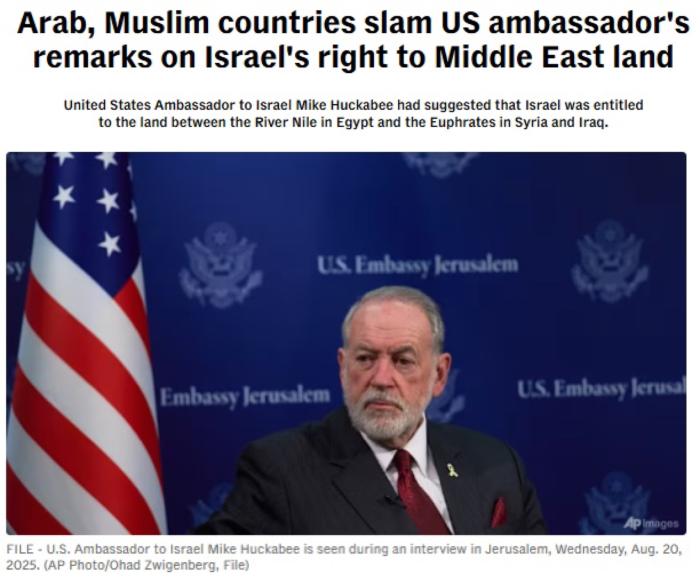 14国及国际组织联合发表声明,谴责美大使“以色列有权控制整个中东”言论