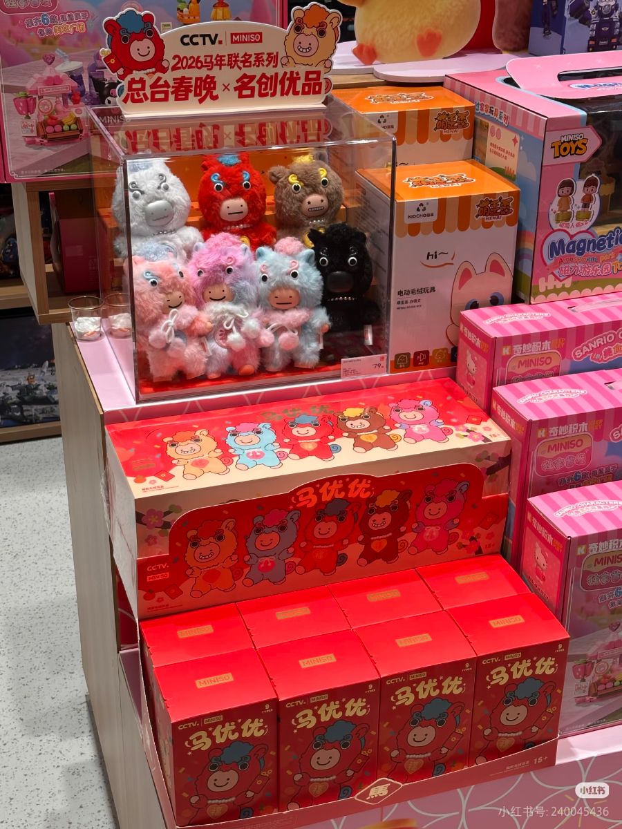 名创优品与央视春晚联名推出的马年系列产品“马优优”也在春节前正式上线。在社交平台上,这款潮玩因“好怪再看一眼”“丑萌”“抽象”等评价引发热议,反而吸引更多年轻人前往门店打卡选购。潮玩爱好者旺旺特意去门店给自己和家人各挑了一个盲盒,作为马年的仪式感,“虽然没有开出我最想要的黑马,但手上这两款也很可爱。”