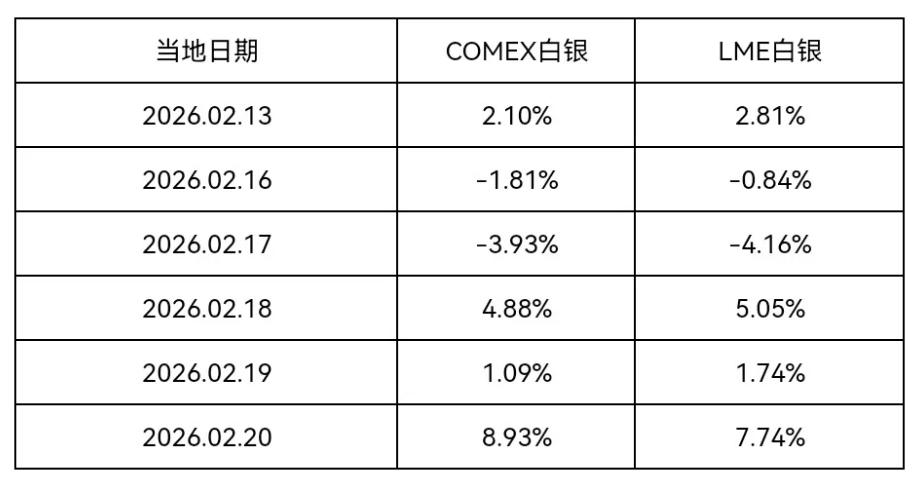 读创财经注意到,2月23日,国投瑞银在其官网还发布了2026年春节国际白银主要市场行情播报。2026年春节期间上海期货交易所休市,海外主要白银交易品种涨跌幅数据如下: