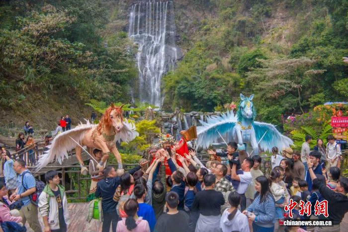 这个春节假期,清远古龙峡景区累计接待游客11.9万人次,客流呈现“稳中有升、多元汇聚”的良好态势,不同年龄层、不同地域的游客在山水间共度新春佳节、共享团圆喜悦。该景区全新升级的网红河谷·奇幻仙峡走红,长达3公里的雨林栈道云雾氤氲,红桥碧波与“史前巨兽”景观相映成趣,随手就能拍出氛围感年味大片。
