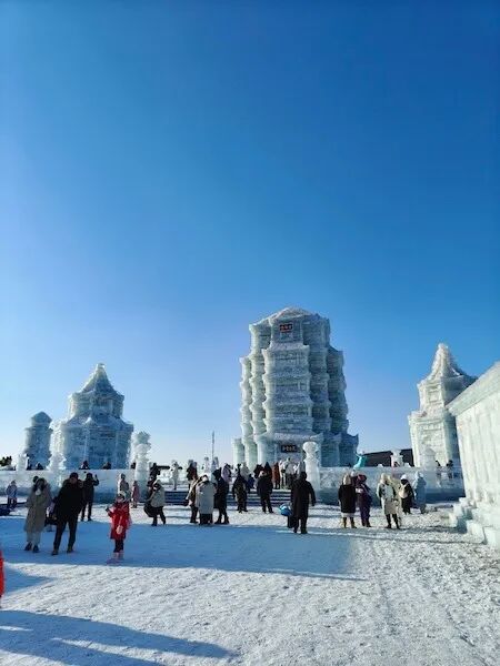 更令人惊喜的是,园区首次启用气象感知系统,实时调节冰雕湿度与温度,确保晶莹剔透不消融。夜间“数字冰焰”投影秀以松花江千年文脉为底色,在中央大塔上演光影叙事,科技与浪漫在此刻浑然一体。游客们驻足仰望,冰塔流光如星河倾泻,每一道光束都映照出哈尔滨人“冷资源变热经济”的硬核智慧——这不是简单的光影秀,而是城市以冰雪为纸、科技为墨写就的高质量发展答卷。