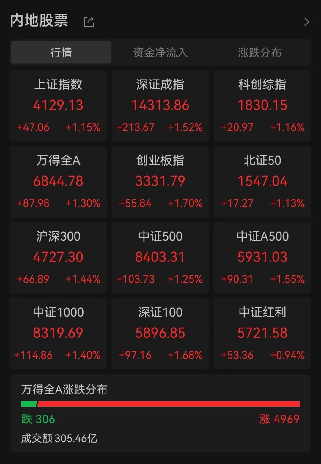 全市超4900只个股高开上涨,贵金属、油气、航运等板块指数涨幅居前。
