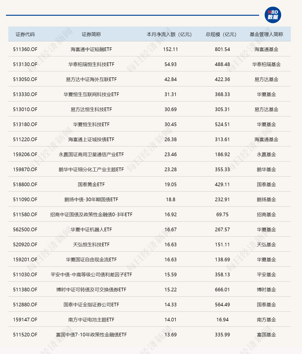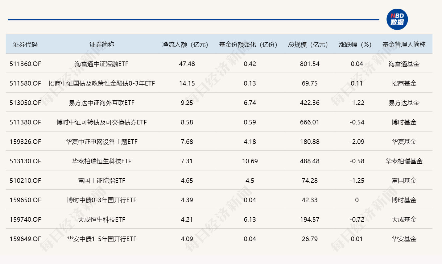 ETF规模速报 | 节前最后一个交易日,8只ETF净流出额超10亿元