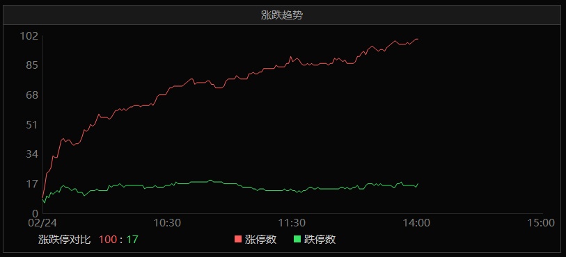 截止13:59,两市100只个股涨停。