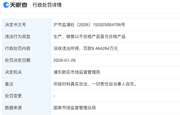 天眼查经营风险信息显示,近日, 宜家贸易(中国)有限公司 因生产、销售以不合格产品冒充合格产品,被浦东新区市场监督管理局罚款9.4万余元,没收违法所得1.6万余元,合计罚没逾11万元。