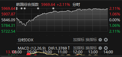 上证报中国证券网讯 2月24日,日韩股市收盘齐涨。日经225指数涨0.87%,报57321.09点;韩国综合指数涨2.11%,报5969.64点。