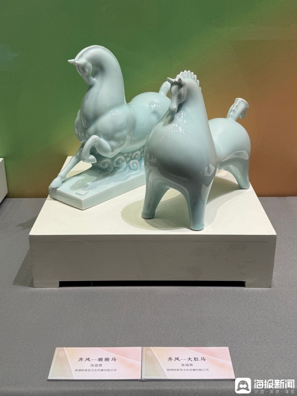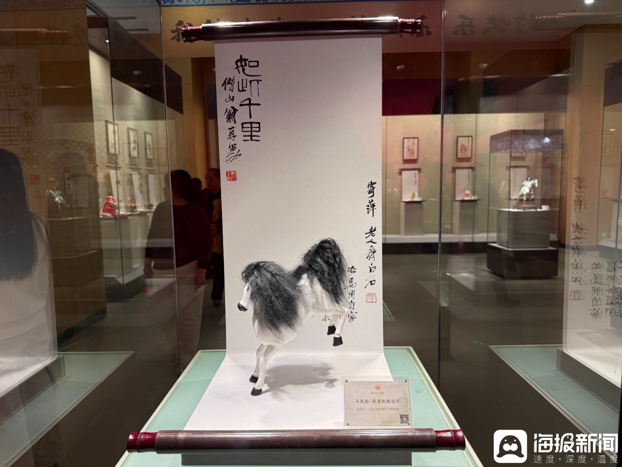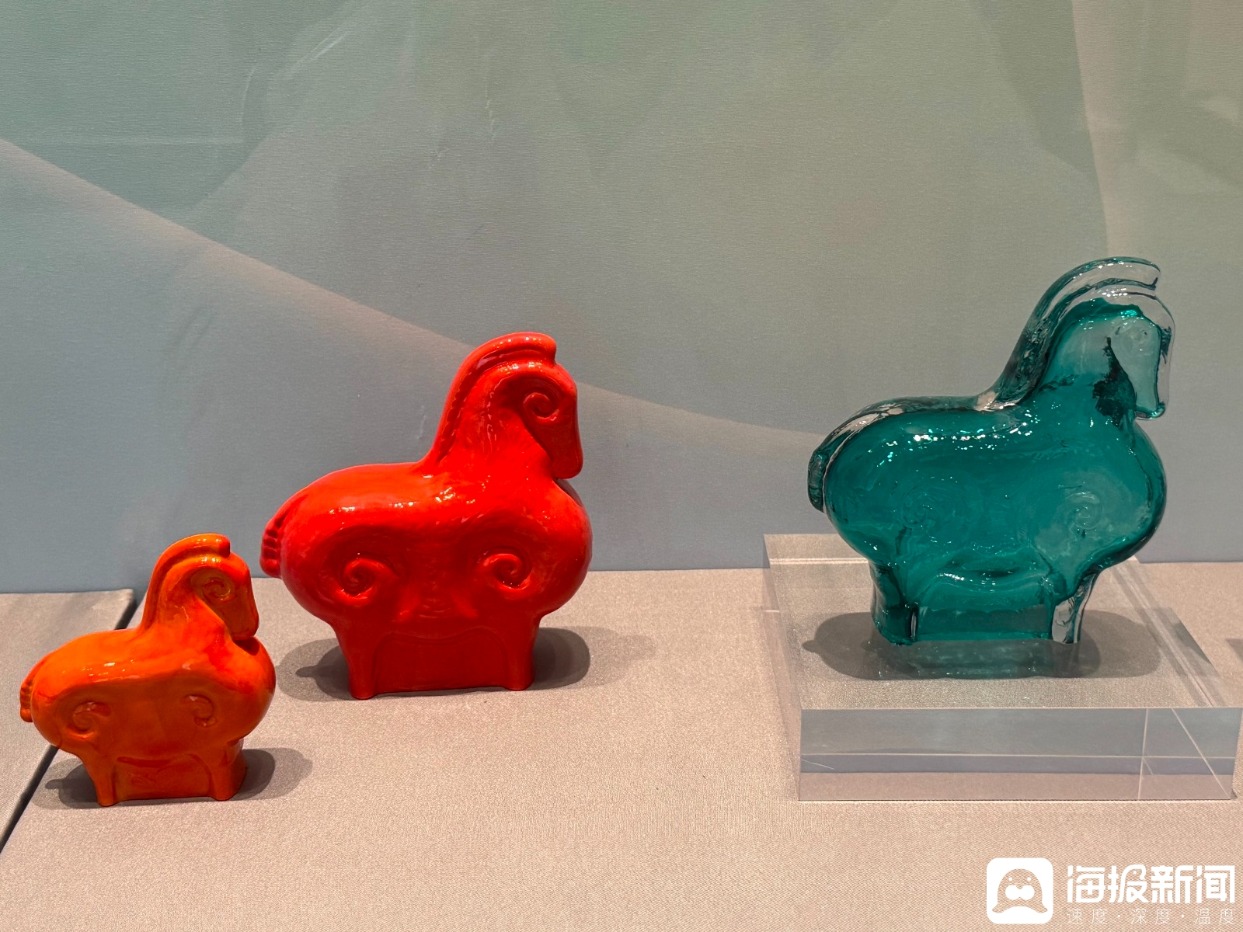 一楼稷下厅内,“齐骥迎春——淄博市马年新春文创展”以139件马主题文创精品、283个灵动各异的马形象,通过琉璃、陶瓷、水墨三大篇章演绎龙马精神。