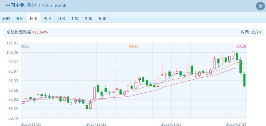 下跌板块中,信息科技、软件服务、影视院线、免税等板块表现疲软。影视院线板块大幅走弱,相关个股联动下跌;免税板块中中国中免(HK01880)跌超10%,成为跌幅较大的权重个股;AI应用方向震荡走低,拖累科技板块整体表现。此外,保险、券商等金融板块部分个股亦出现资金流出,中国太保、中金公司等个股表现承压。