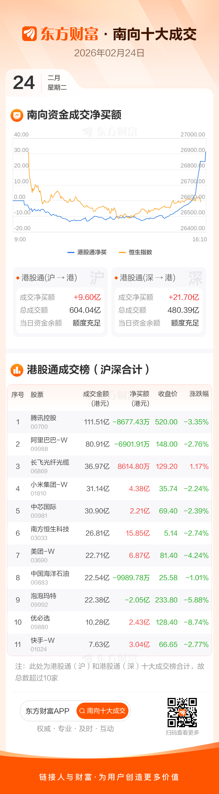 2月24日南向资金净买逾31亿港元,近16亿抢筹南方恒生科技