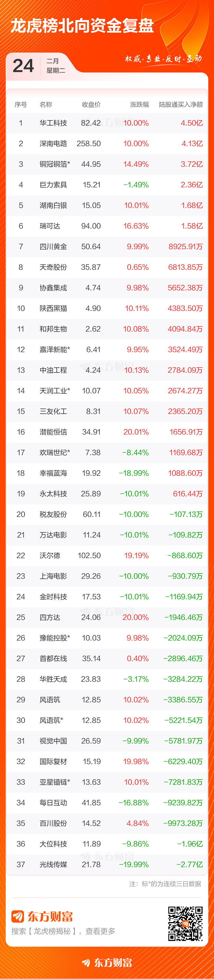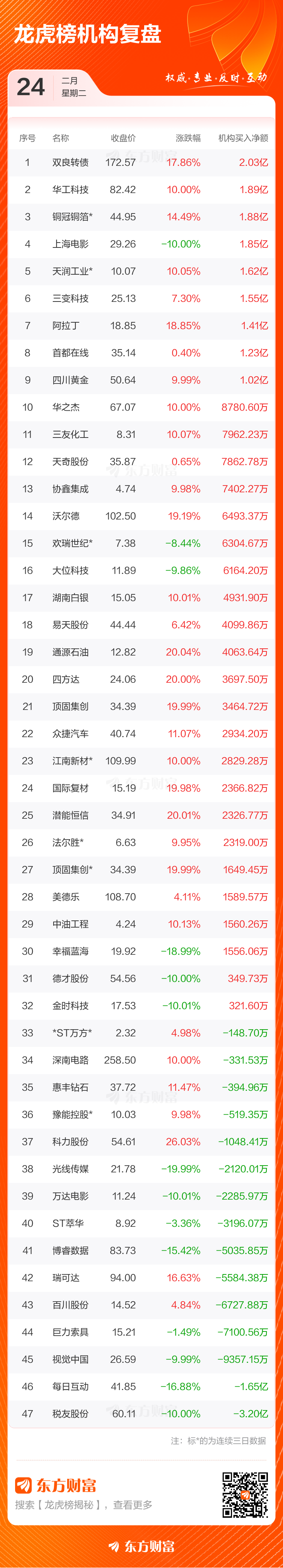 2月24日龙虎榜复盘:铜冠铜箔净买额居首