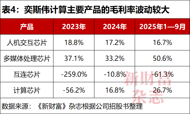 其多媒体处理芯片的毛利率较高,2025年前三季度已经提升到超过50%,主要是由于向一客户提供定制服务导致,这种状况或难以持续。互连芯片持续在负毛利率状态下,计算芯片毛利率一直在改善,但与多媒体处理芯片相似,在收入大盘中比重较低,难以有效拉抬综合毛利率。
