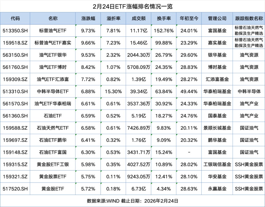 【导读】今日石油ETF强势霸榜,跨境ETF狂飙近10%