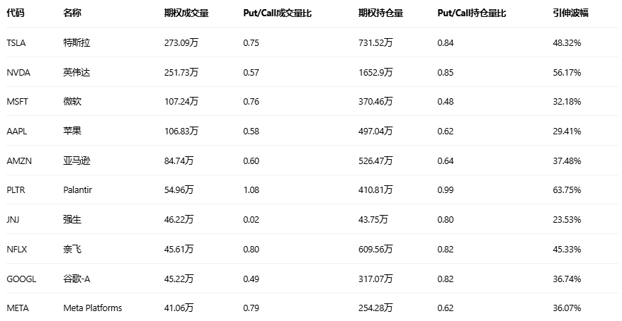 美股期权成交量排行榜前十