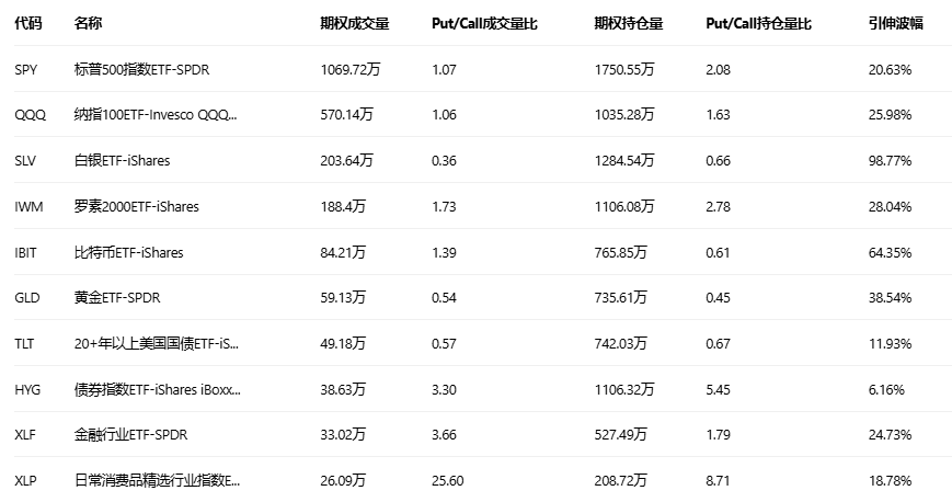 美股ETF期权成交量排行榜前十