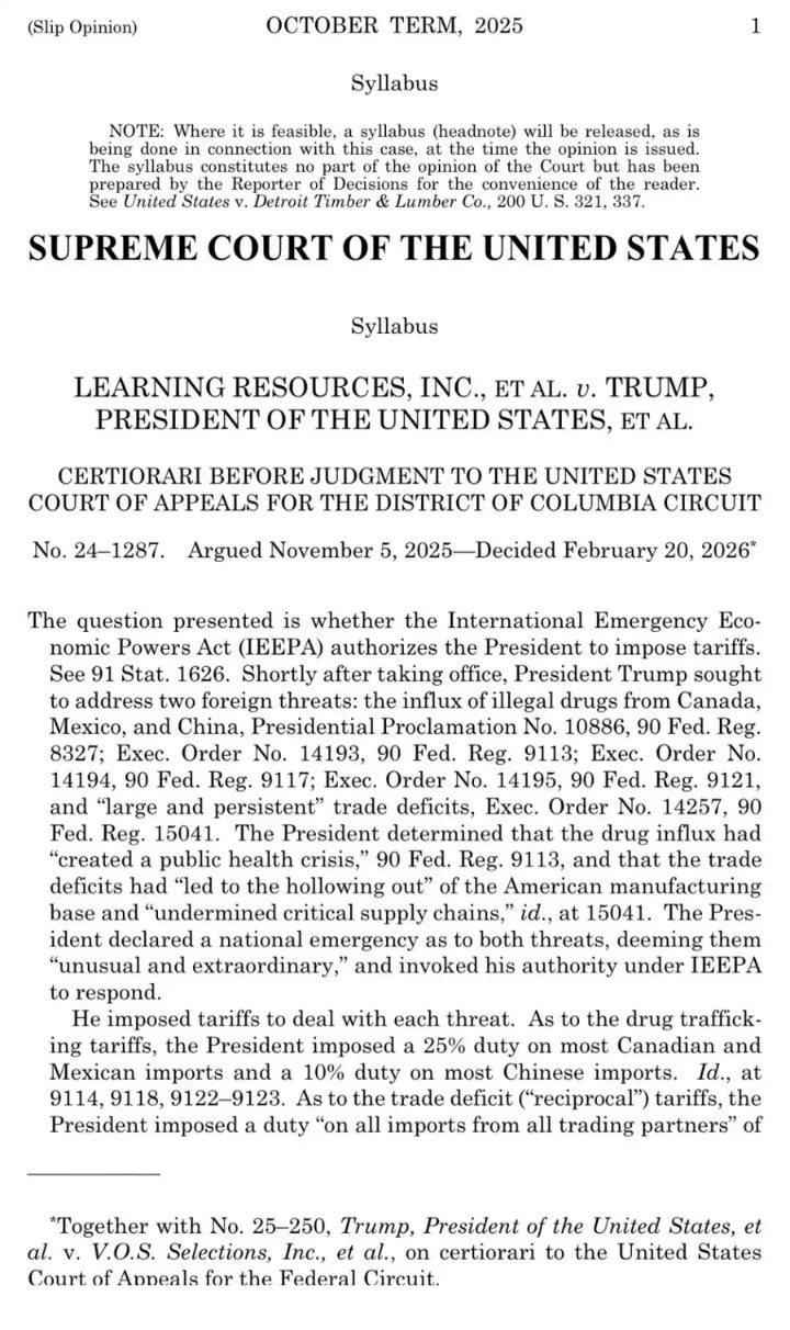 当地时间2月20日,美国最高法院公布裁决,认定美国《国际紧急经济权力法》没有授权总统征收大规模关税,这意味着特朗普上任后的核心关税政策违法。此后,特朗普政府紧急签署行政令对来自所有国家和地区的商品加征10%的关税。21日,特朗普又宣布将这一关税增加至15%。新关税会在美国时间2月24日生效,同时旧关税失效。