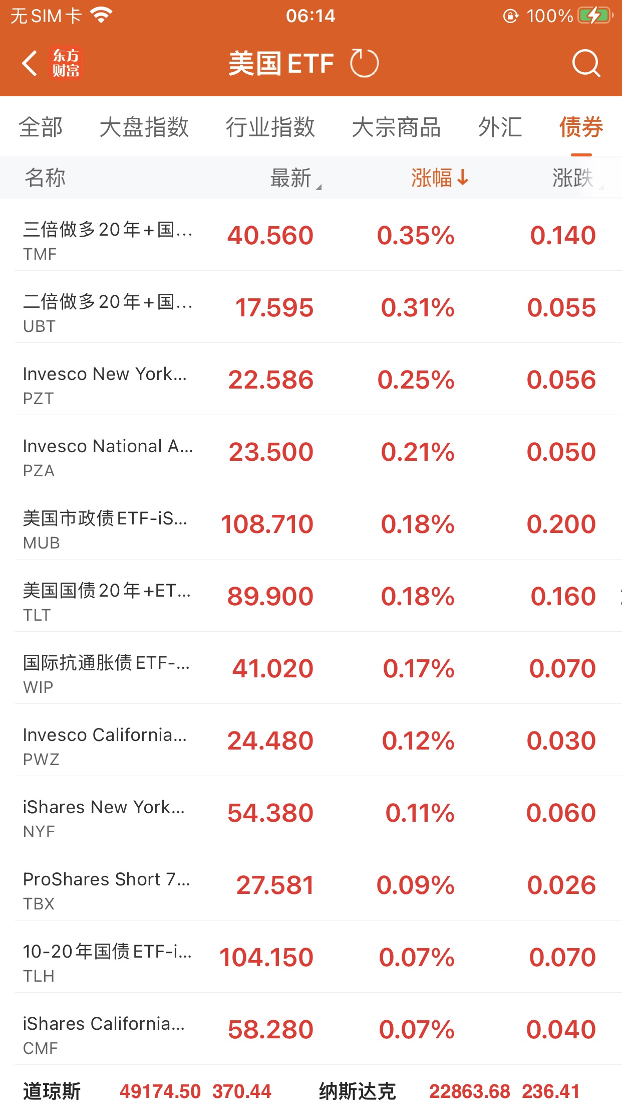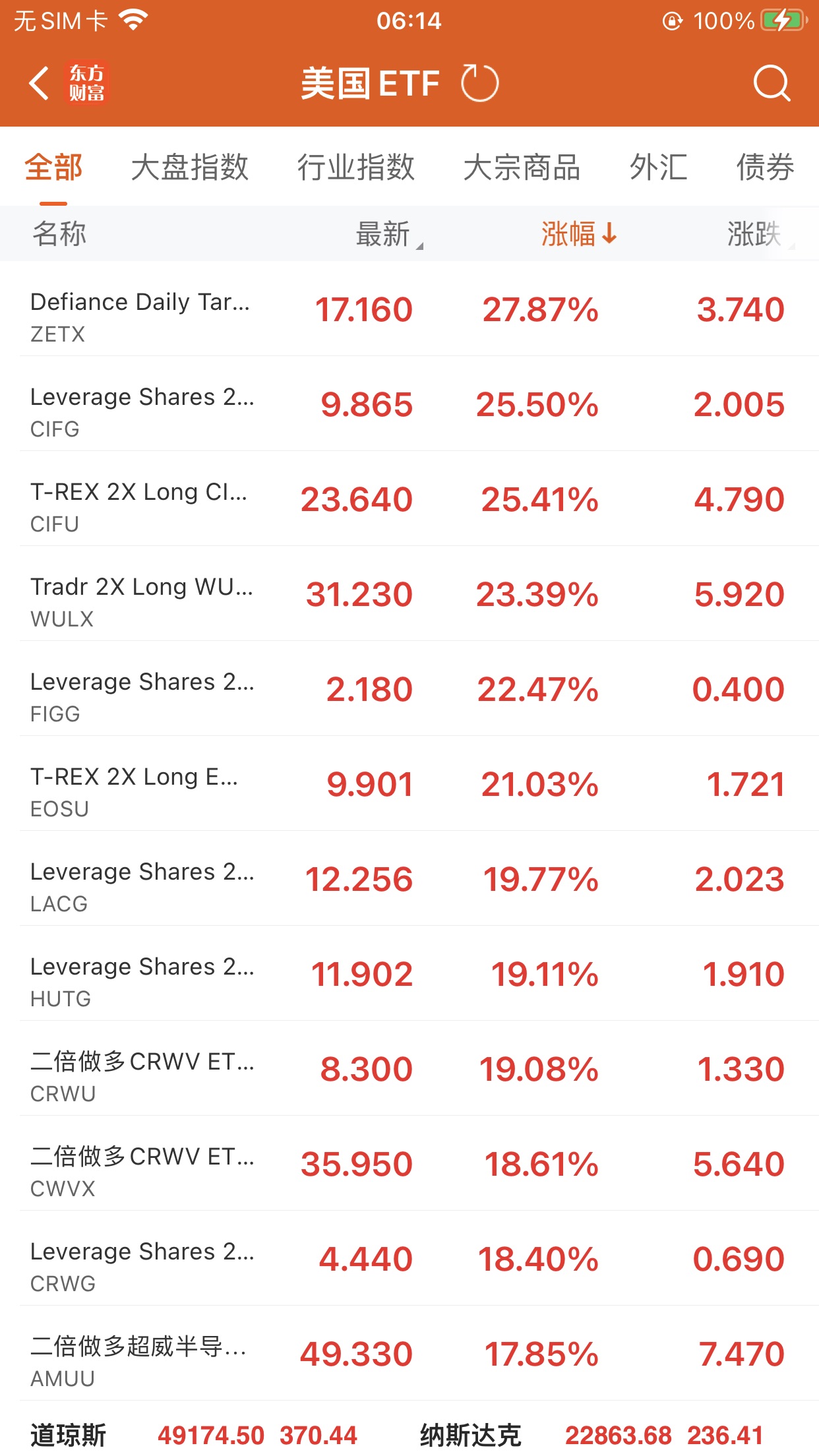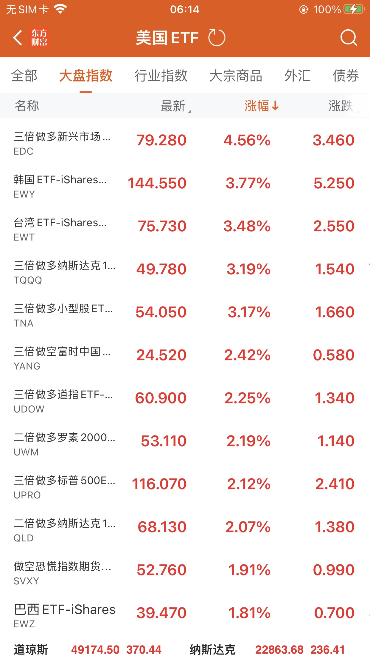 美股大型指数ETF升幅榜Top5