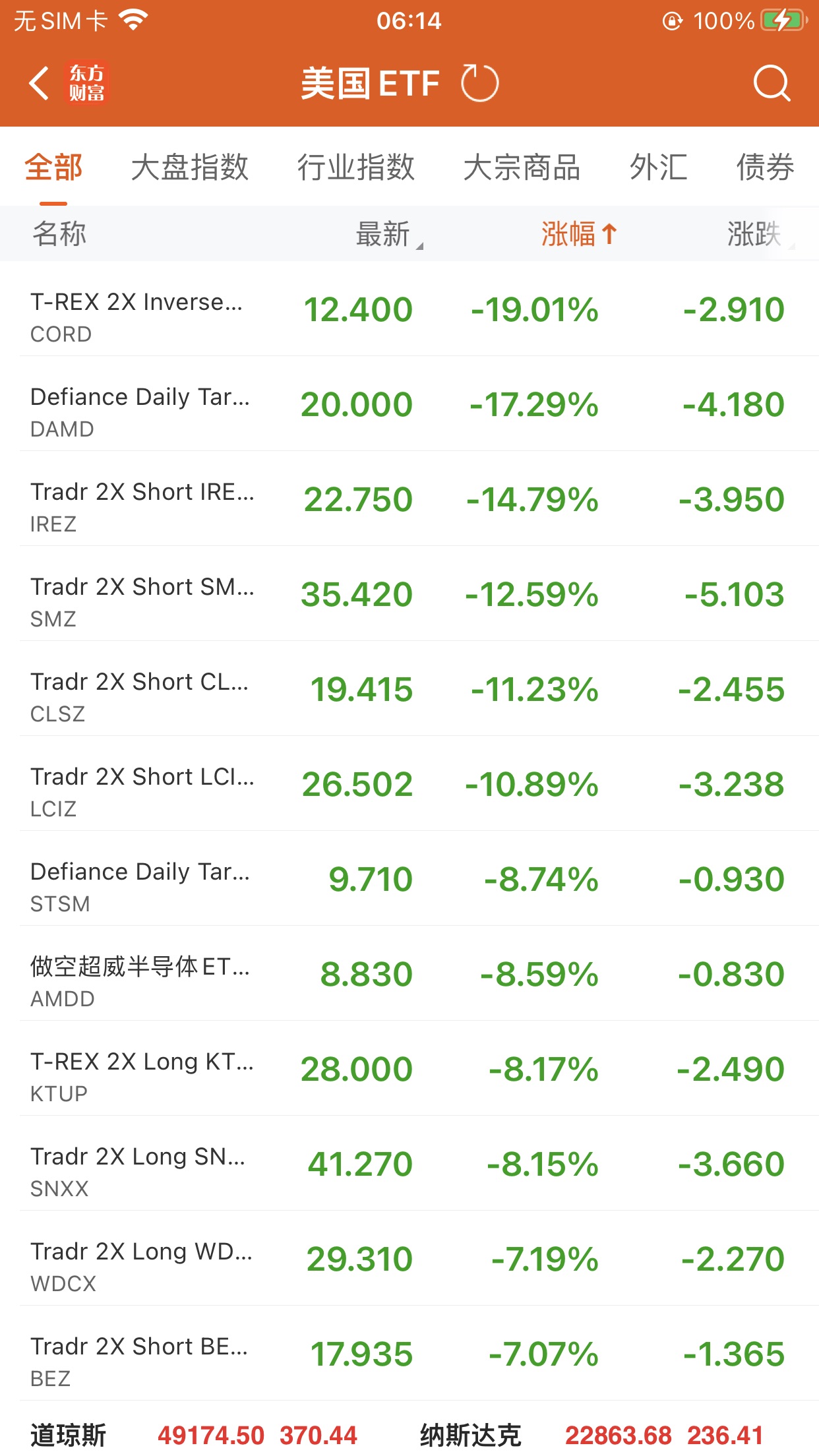美股ETF跌幅榜Top5