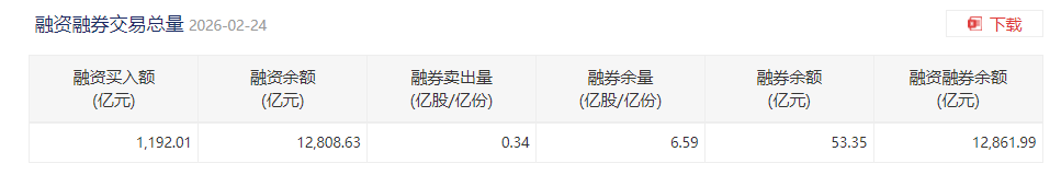 上证报中国证券网讯截至2月24日,上交所融资余额报13168.87亿元,较前一交易日增加162.2亿元;深交所融资余额报12808.63亿元,较前一交易日增加175.18亿元;两市合计25977.5亿元,较前一交易日增加337.38亿元。