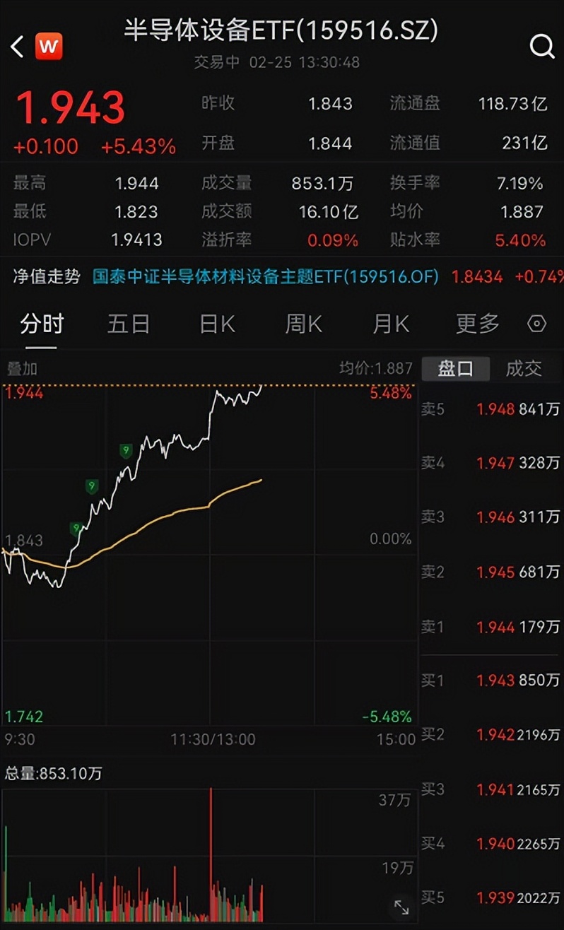 今日市场回暖,半导体设备ETF(159516)上午开盘下杀后一路上扬,午后再度加速,盘中涨超5%。