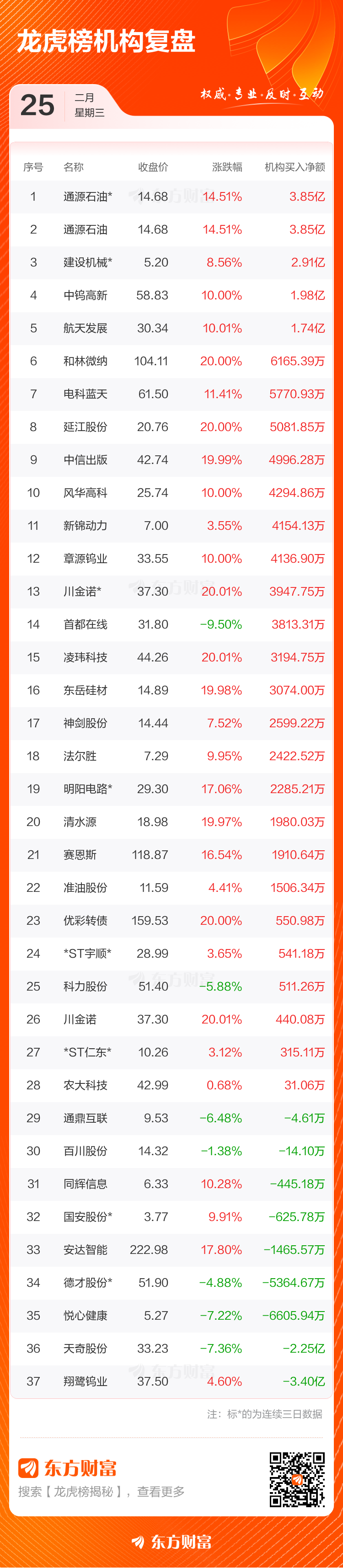2月25日龙虎榜复盘:包钢股份净买额居首
