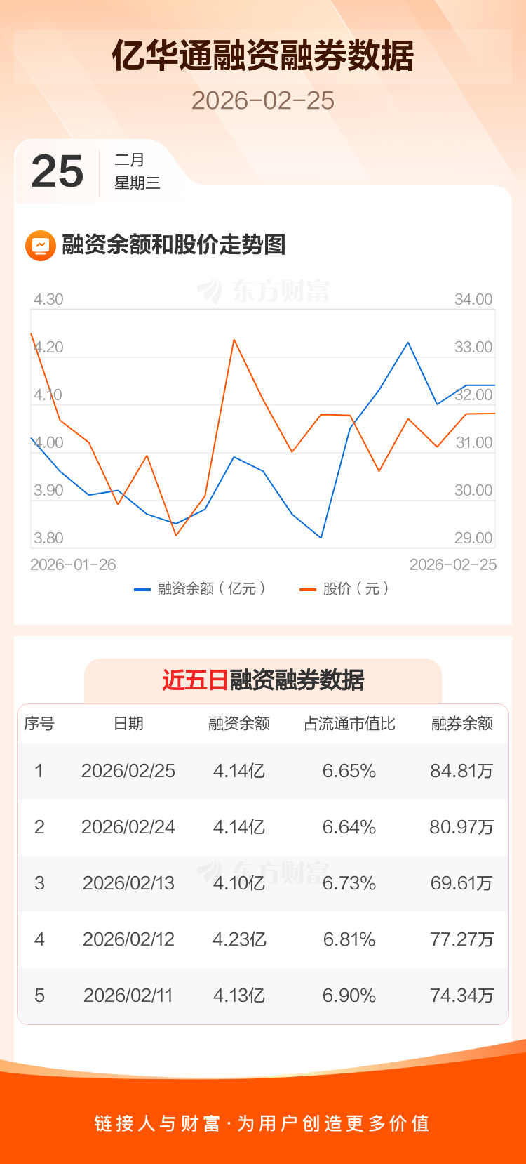 交易所最新数据显示,亿华通于2026年2月25日获融资买入2320.34万元,融资偿还2263.83万元,当日融资净买入56.51万元。目前,该股融资余额4.14亿,占流通市值比例为6.65%。