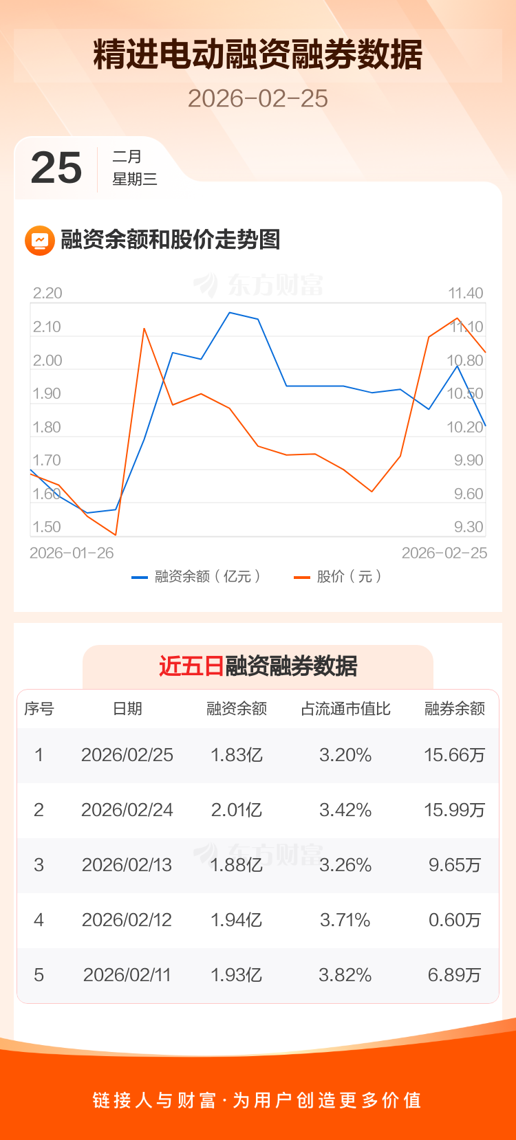 交易所最新数据显示,精进电动于2026年2月25日获融资买入3284.78万元,融资偿还5090.70万元,当日融资净偿还1805.92万元。目前,该股融资余额1.83亿,占流通市值比例为3.20%。