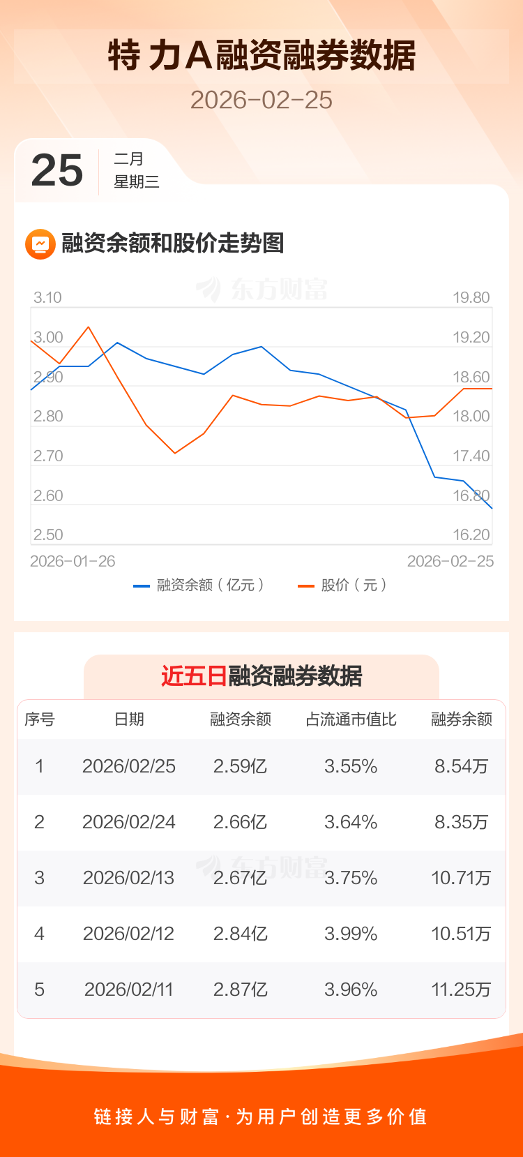 交易所最新数据显示,特 力A于2026年2月25日获融资买入1329.22万元,融资偿还1973.85万元,当日融资净偿还644.64万元。目前,该股融资余额2.59亿,占流通市值比例为3.55%。