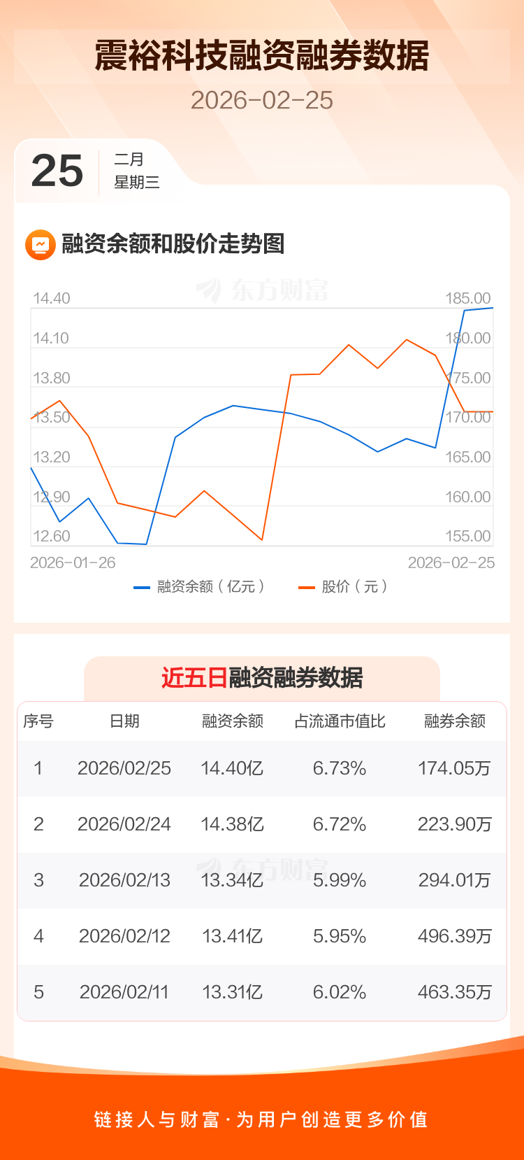 交易所最新数据显示,震裕科技于2026年2月25日获融资买入6192.05万元,融资偿还5974.70万元,当日融资净买入217.36万元。目前,该股融资余额14.40亿,占流通市值比例为6.73%。