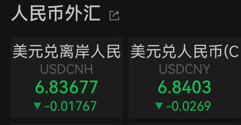 2月26日,更多反映国际投资者预期的离岸人民币对美元汇率盘中最高升值至6.83605,较前一交易日升值超0.25%。中间价方面,当日,人民币对美元中间价上调93个基点,报6.9228。