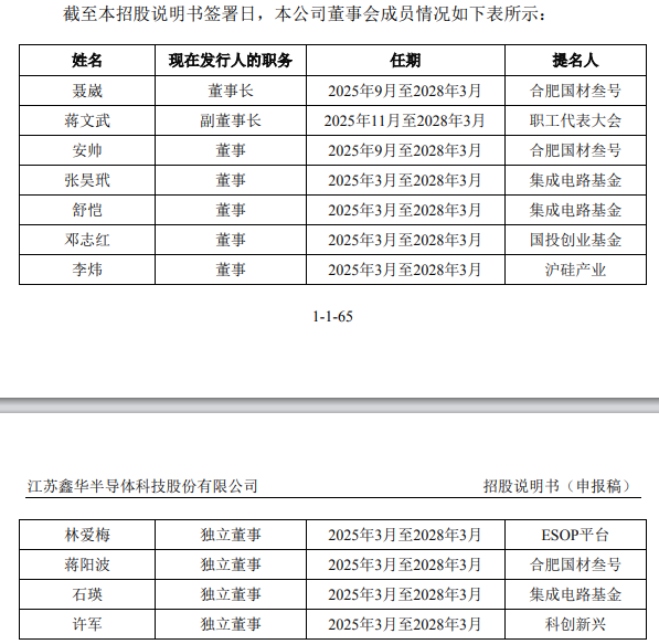 招股书所附简历显示,聂崴,男,1981 年 3 月出生,中国国籍,无境外永久居留权,经济学硕士学位,经济师、政工师。2003 年 7 月参加工作,2003 年 6 月加入中国共产党。2008 年 7 月至 2020 年 12 月,历任中国建材股份有限公司投资发展部总经理助理、副总经理;2021 年至 2025 年 3 月,历任西南水泥党委委员、纪委书记、党委副书记、董事;2025 年 4 月至今,任中建材联合投资有限公司副总经理。2025年 9 月至今,任鑫华半导体董事长。