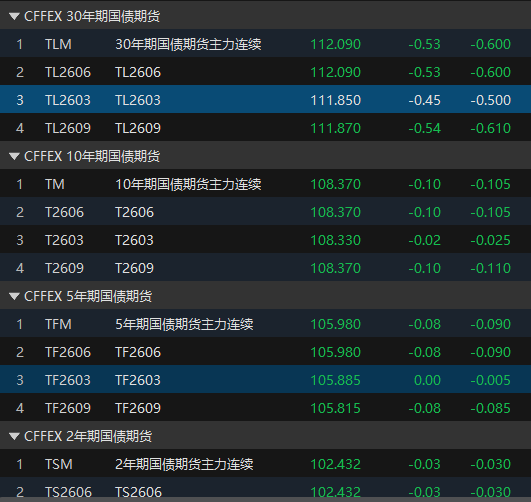 国债期货收盘全线下跌