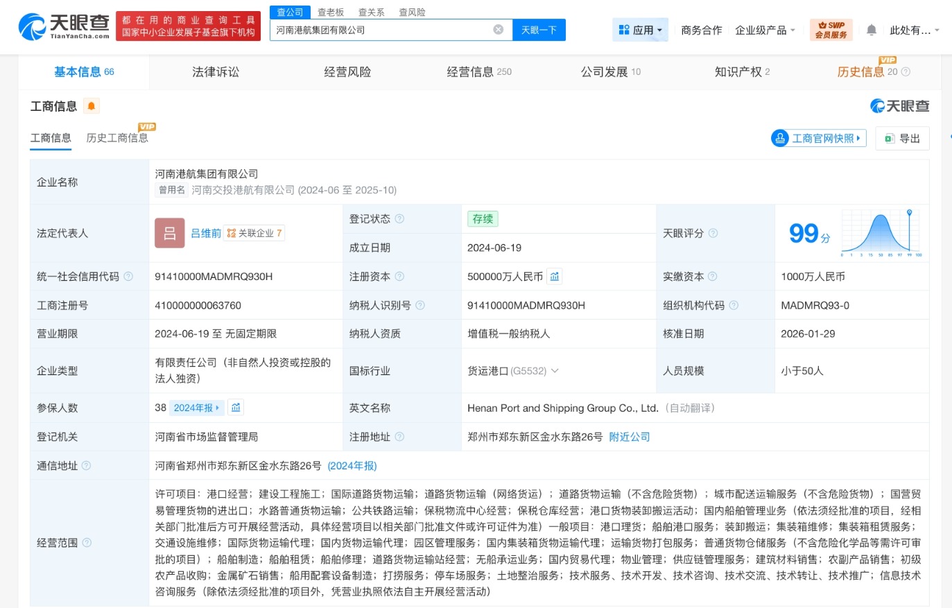 【大河财立方消息】天眼查App显示,近日,河南港航集团有限公司发生工商变更,注册资本由10亿人民币增至50亿人民币,增幅400%。该公司法定代表人为吕维前,由河南交通投资集团有限公司全资持股。