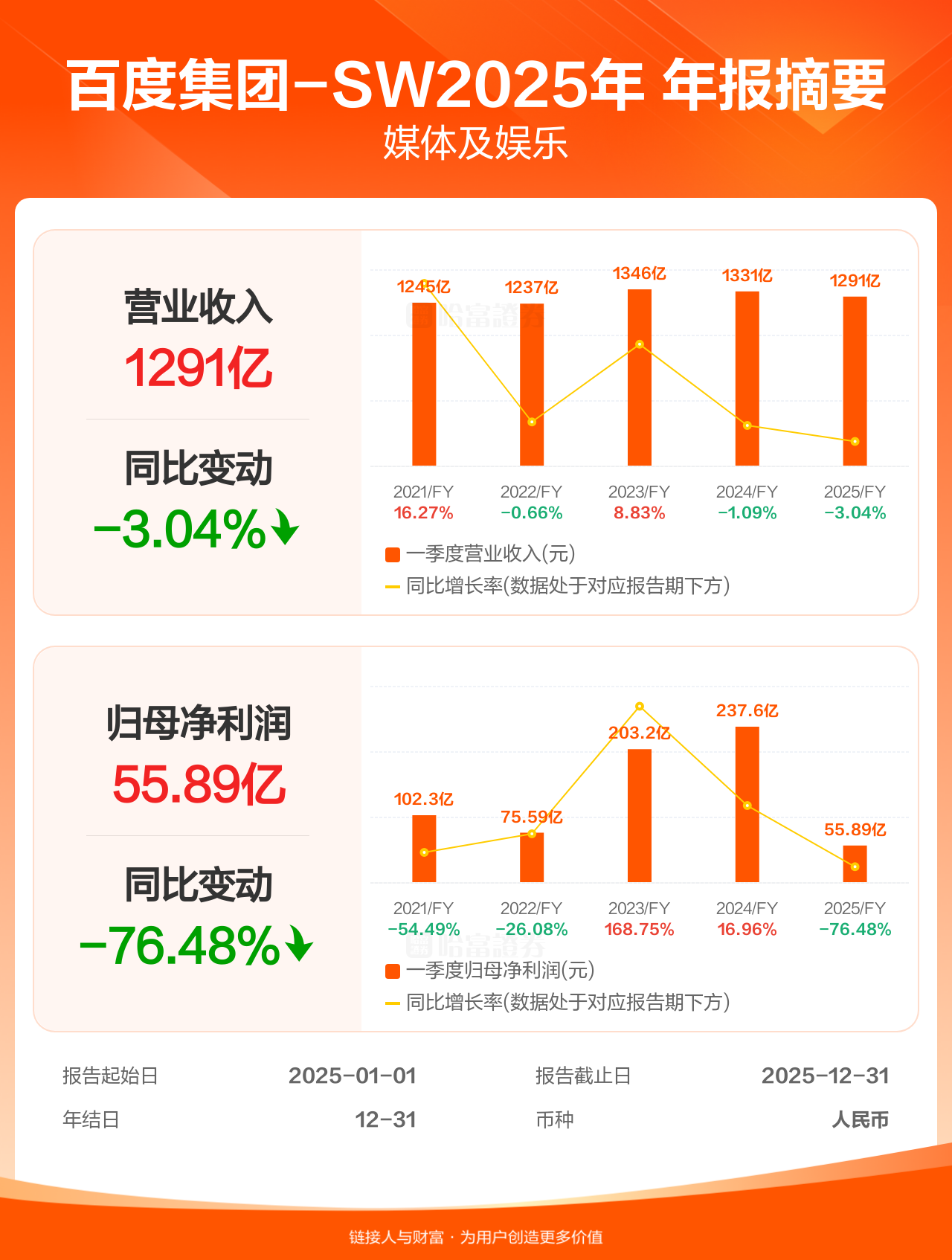 【图解财报】百度集团-SW年报盈利55.89亿人民币,同比减少76.48%