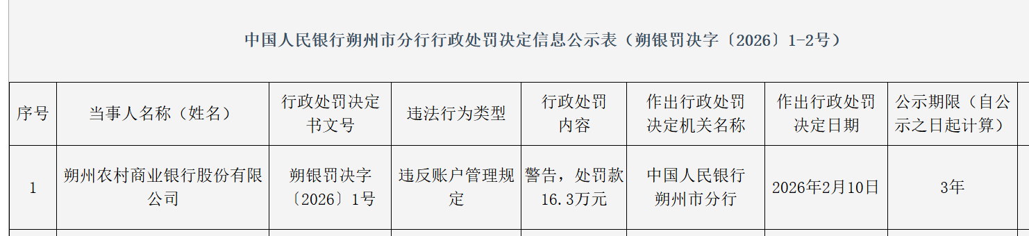 朔州农商行被罚16.3万,涉违反账户管理规定