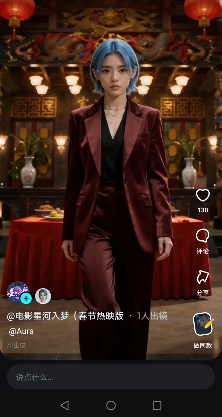 中国首部AIGC动画电影《团圆令》将于2月28日登陆大银幕,随着AI技术日渐成熟,今年是否会有大量AI电影出现?在徐一然看来,AI长片在技术上已经成为可能,能否进入市场取决于审批。但不可否认的是,今年会有大量AI漫剧、AI长片在网络平台出现,“电影的长度一个半小时其实本来就不是按照观众的选择发明出来的,现在网剧让影视的长度变得自由,所以故事的长度一定程度会回归到故事本身的寿命。”
