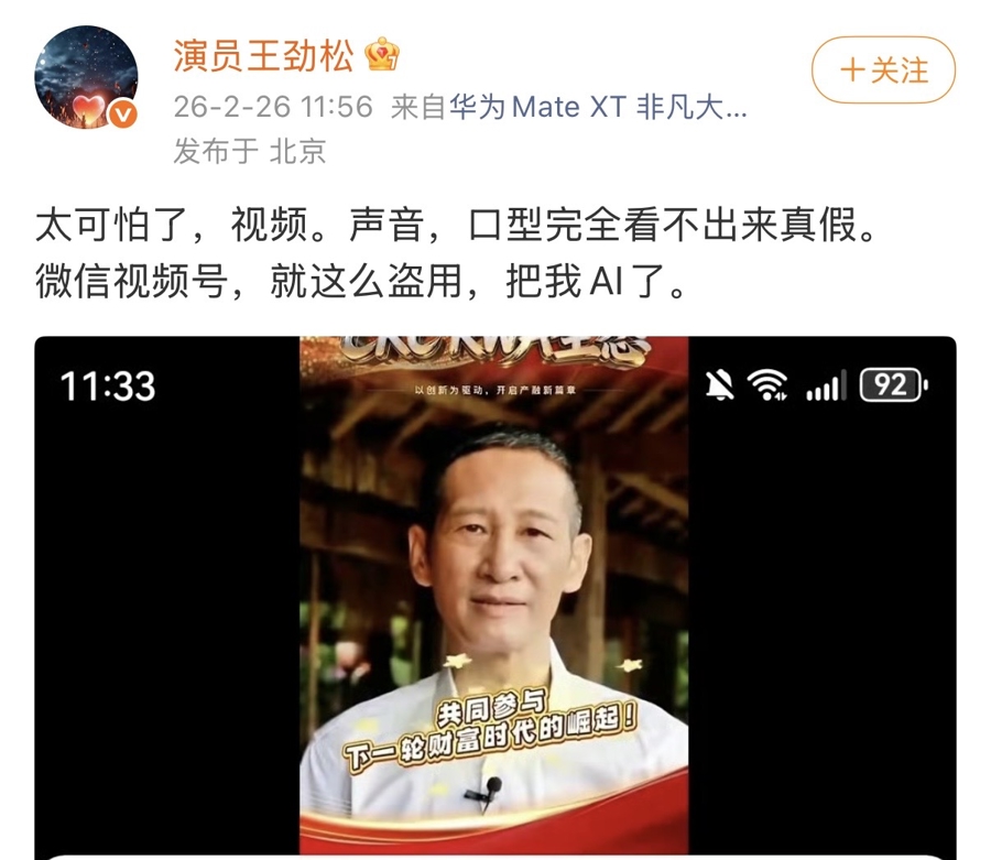 AI引发全民创作狂欢的同时,AI生成内容的版权及侵权问题亦引发关注。就在记者发稿当天,演员王劲松发文称自己的形象被AI盗用生成侵权视频,“太可怕了,视频。声音、口型完全看不出来真假。微信视频号,就这么盗用,把我AI了。”虽然该侵权视频经他投诉后已下架,但王劲松仍对此表示担忧:“我担心的是以后会不会出现更真、性质更恶劣的AI肖像侵权行为,用于诈骗呢?不敢想……”随着AI技术的发展,如何处理AI侵权及版权保护,已经是无法回避的问题。