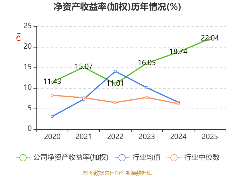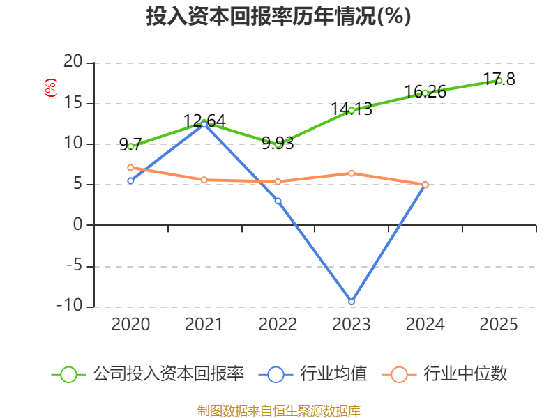 数据显示,2025年公司加权平均净资产收益率为22.04%,较上年同期上升3.3个百分点。公司2025年投入资本回报率为17.8%,较上年同期上升1.54个百分点。