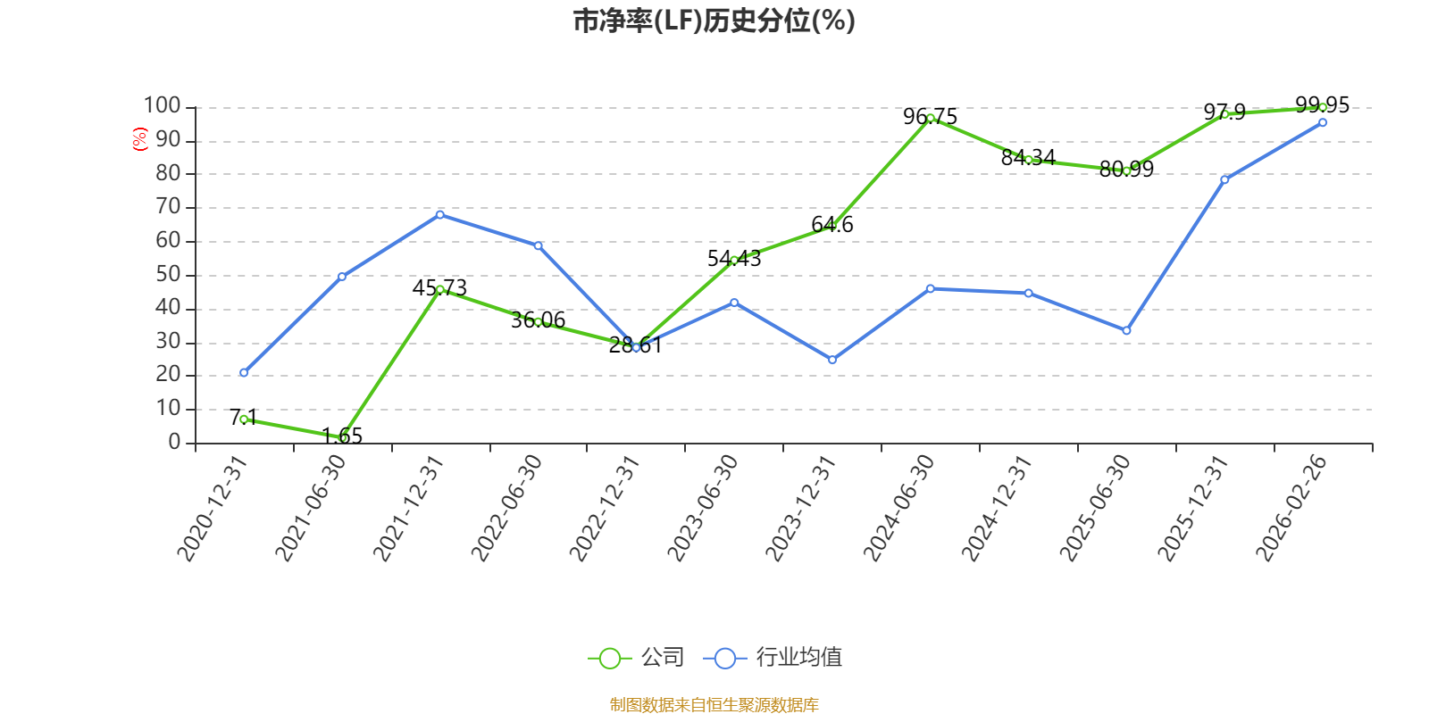 市盈率、市净率为负时,不显示当期分位数,会导致折线图中断。