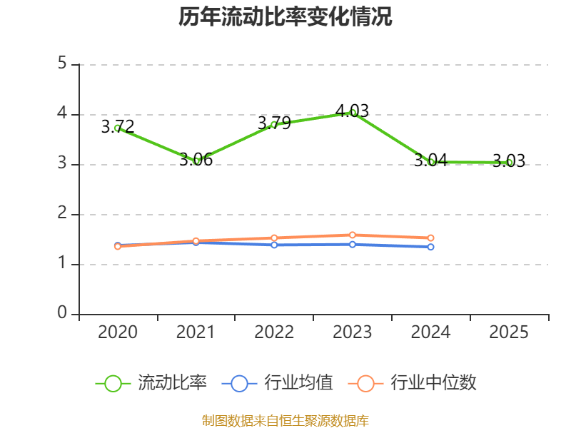 2025年,公司流动比率为3.03,速动比率为2.67。