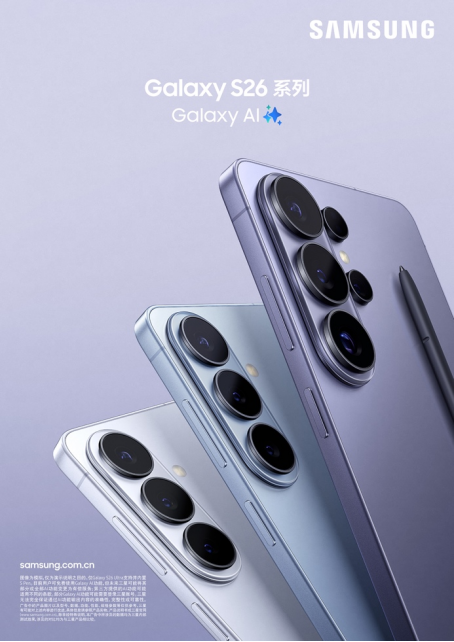 2026年2月26日,三星电子正式推出第三代AI手机Galaxy S26系列,包含Galaxy S26、S26+和S26 Ultra三款机型。该系列以强悍硬件、专业影像系统与升级的Galaxy AI为核心,通过简化操作步骤,为用户在日程规划、信息查找、影像创作等日常场景带来更轻松的使用体验,同时构建了多层级的安全防护体系,守护用户隐私与数据安全。