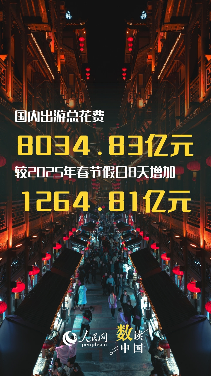 今年春节假期,“流动中国”再次展现了其蓬勃的活力与潜力:全社会跨区域人员流动量累计超28亿人次,同比增长8.2%,创历史新高。全国国内出游5.96亿人次,较2025年春节假日8天增加0.95亿人次,国内出游总花费8034.83亿元。9天春节长假,多项指标创新高,消费市场呈现供销两旺的热闹景象。这红红火火的消费热潮,既映照着千家万户的团圆喜悦,也描绘出我国消费市场转型升级的崭新画卷。