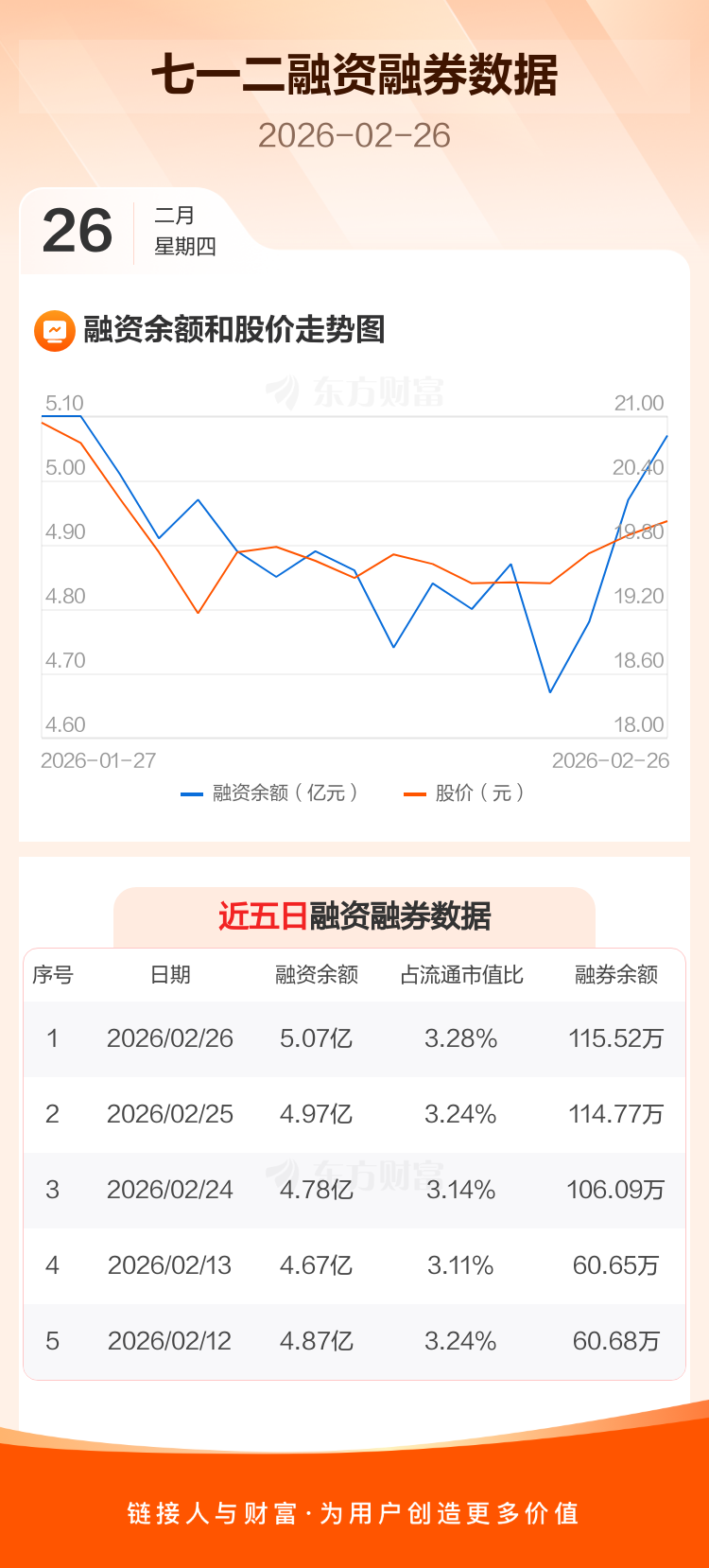 交易所最新数据显示,七一二于2026年2月26日获融资买入2933.48万元,融资偿还1949.80万元,当日融资净买入983.68万元。目前,该股融资余额5.07亿,占流通市值比例为3.28%。