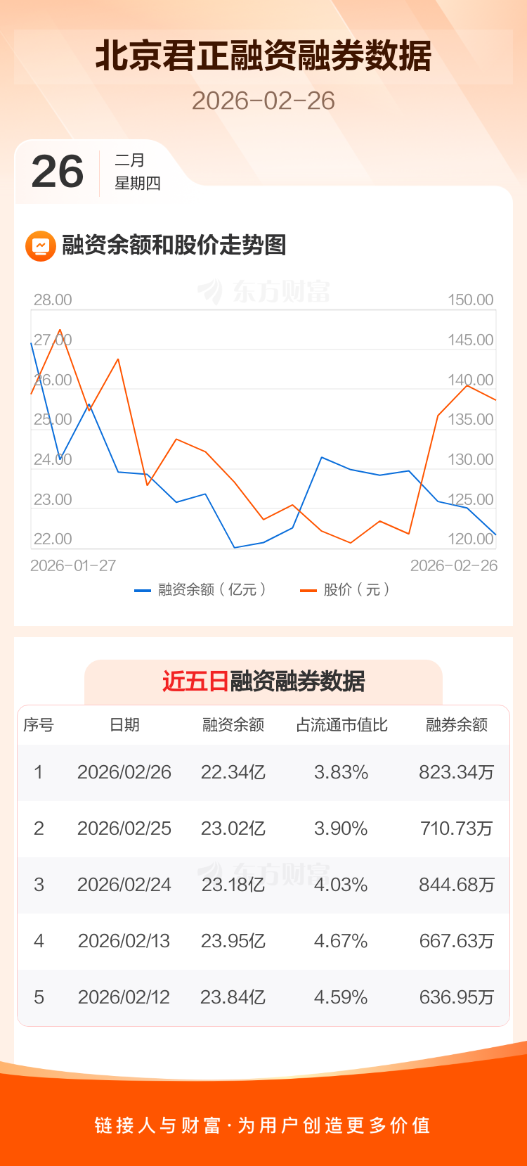 交易所最新数据显示,北京君正于2026年2月26日获融资买入3.85亿元,融资偿还4.53亿元,当日融资净偿还6773.47万元。目前,该股融资余额22.34亿,占流通市值比例为3.83%。