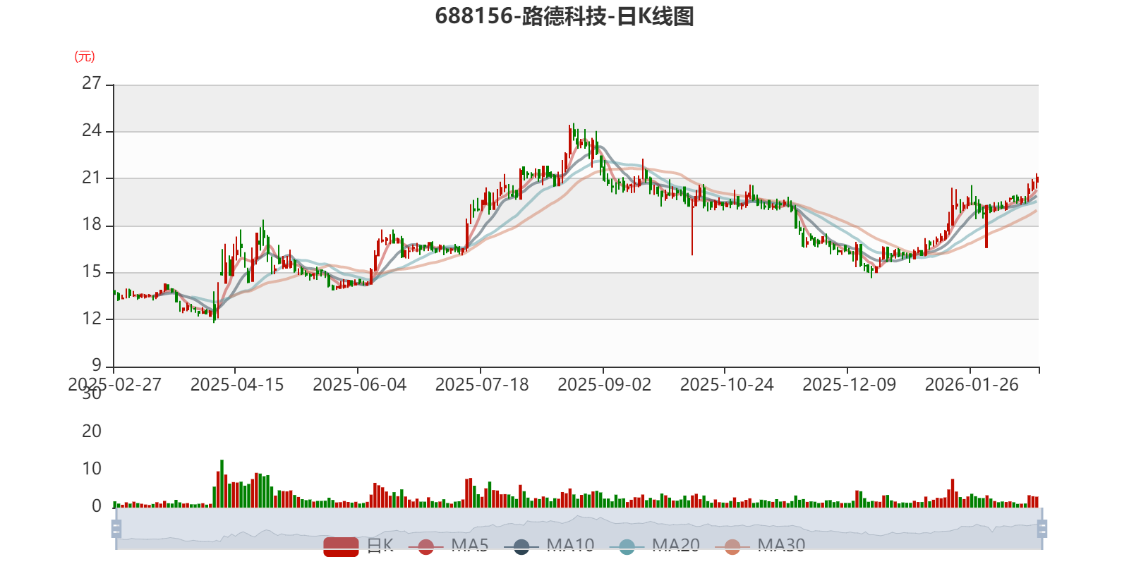 中证智能财讯路德科技(688156)2月26日晚间披露2025年业绩快报,公司实现营业收入3.83亿元,同比增长37.85%;归母净利润亏损7031.94万元,上年同期亏损5655.15万元;扣非净利润亏损7388.83万元,上年同期亏损5967.35万元;基本每股收益-0.7元,加权平均净资产收益率为-8.8%。以最新收盘价计算,市净率(LF)约2.59倍,市销率(TTM)约6.87倍。