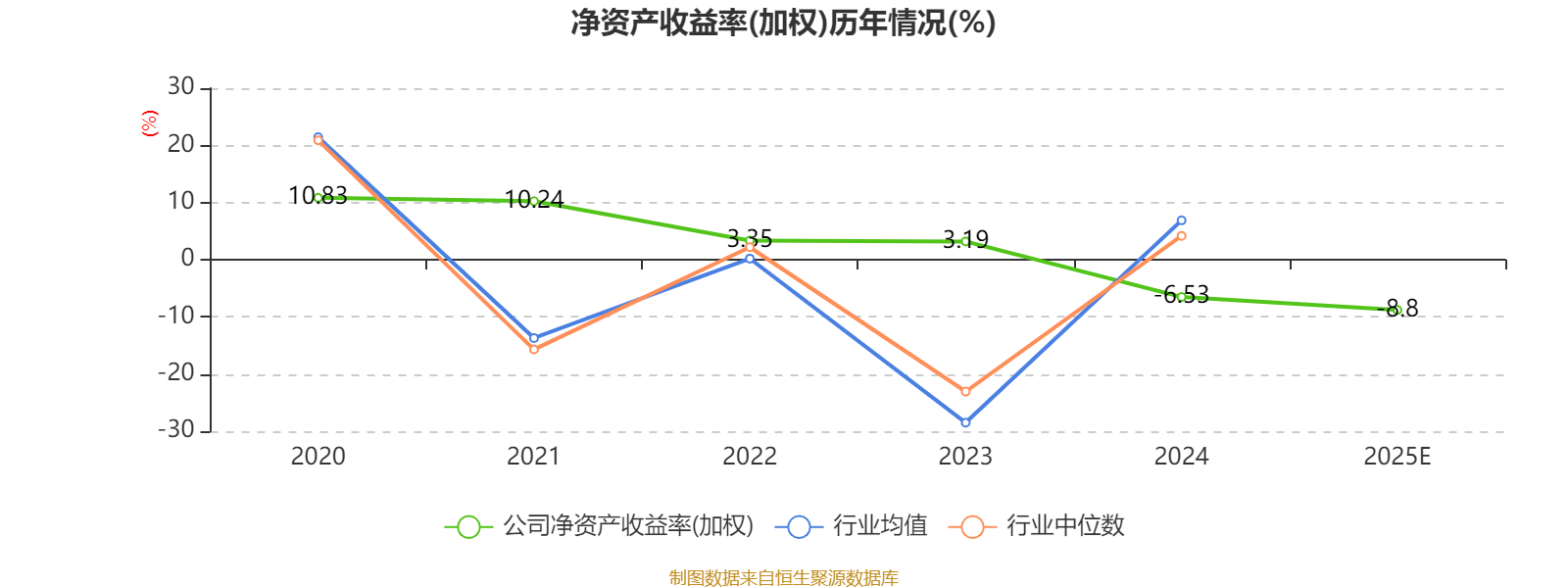 数据显示,2025年公司加权平均净资产收益率为-8.8%,较上年同期下降2.27个百分点。