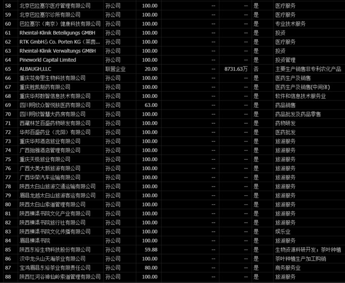 其中:市值51亿的丽江股份29.99%的股权,合计持有市值50亿的颖泰生物(920819)47.07%的股权,公司直接持有市值120亿的凯盛新材(301069)44.51%的股权。华邦健康旗下的凯盛新材确实是全球最大的氯化亚砜生产企业,年产能达15万吨,氯化亚砜是生产锂电池电解液关键材料双氟磺酰亚胺的重要原料。华邦健康通过控股子公司颖泰生物间接参股美国Albaugh, LLC公司20%的股权。